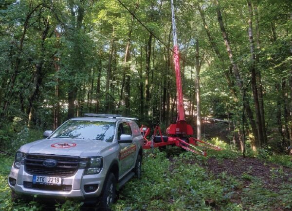 Záchranáři HBZS Ostrava u bývalého dolu Lazy ve špatně dostupném terénu s úspěchem využili pracovní plošinu DENKA 30 L. Rizikové kácení stromů pomocí plošiny je ideální řešení tam, kde je potřeba maximální bezpečnost a přesnost — například v blízkosti budov, elektrického vedení nebo na veřejných prostranstvích.